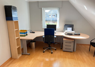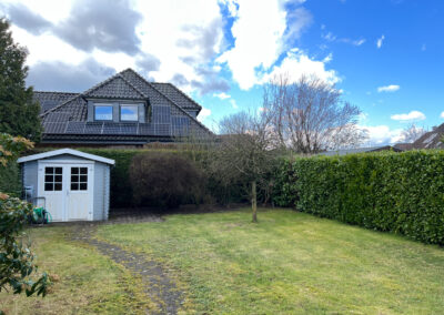 Es verfügt neben dem ruhig gelegenen Garten, einer gen Westen ausgerichteten Terrasse, einer Einzelgarage mit davor befindlichem PKW-Stellplatz, auch über vier Zimmer, ein Badezimmer, ein Gäste-WC, eine Küche, einen Hauswirtschaftsraum, einen Abstellraum und einen Speicher.