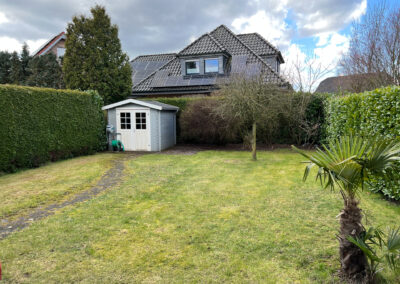 Im hinteren Bereich des Gartens steht ein Gartenhaus, das 2019 neu angeschafft wurde.