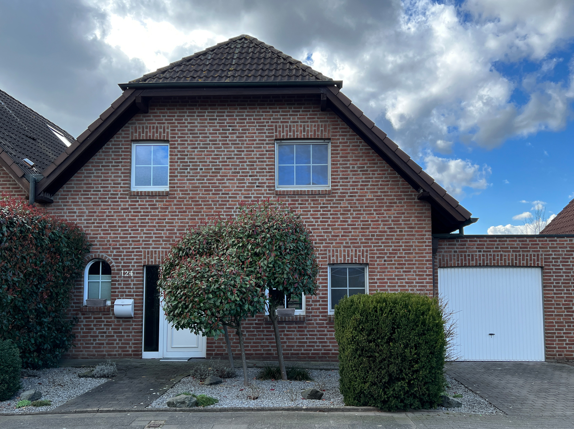 Vor der Garage, auf dem eigenen Grundstück, kann ein PKW abgestellt werden.