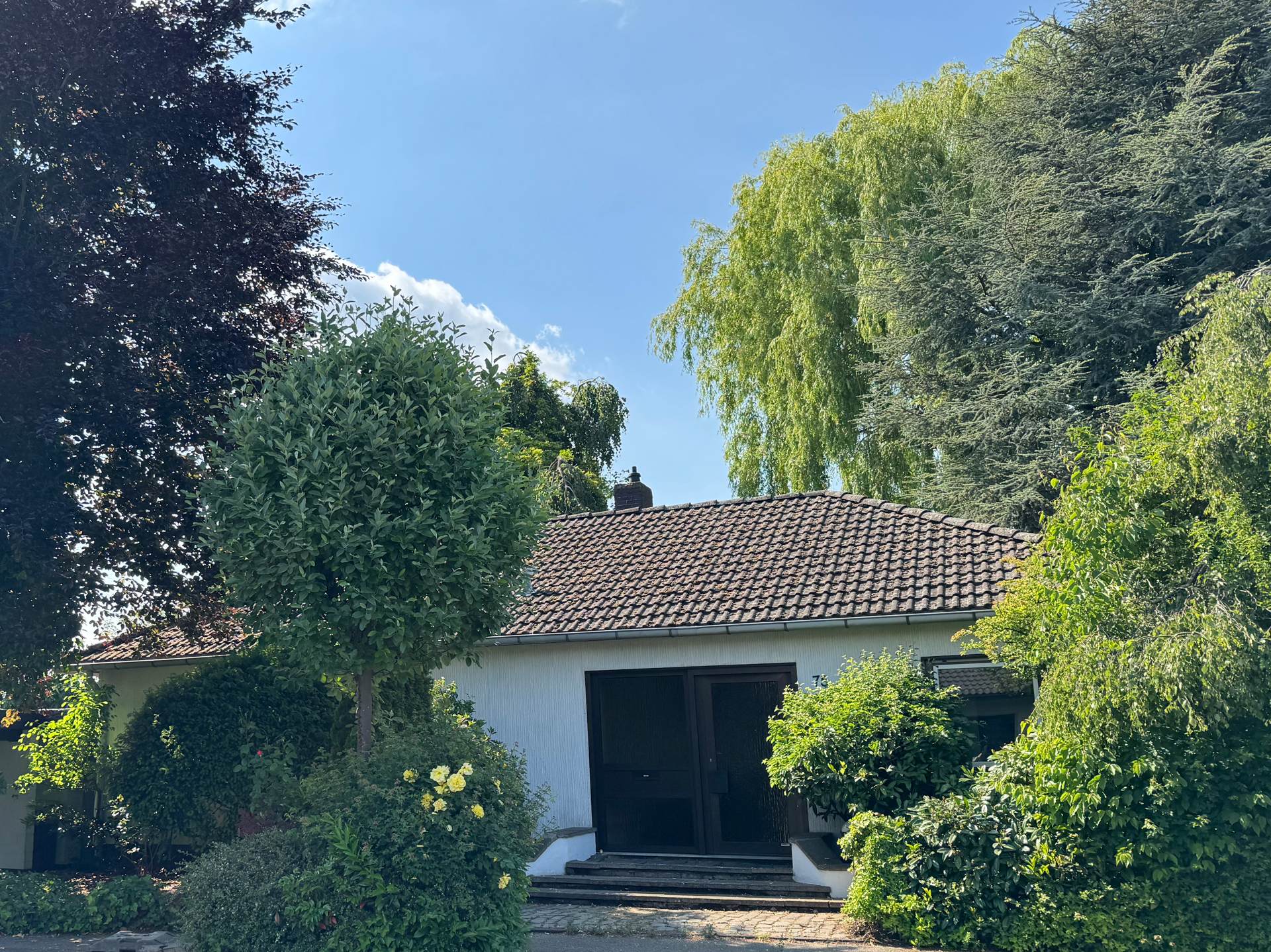 Dieser freistehende, voll unterkellerte Winkelbungalow wurde 1976 in solider Fertigbauweise fertiggestellt und befindet sich in einer ruhigen, familienfreundlichen Lage.