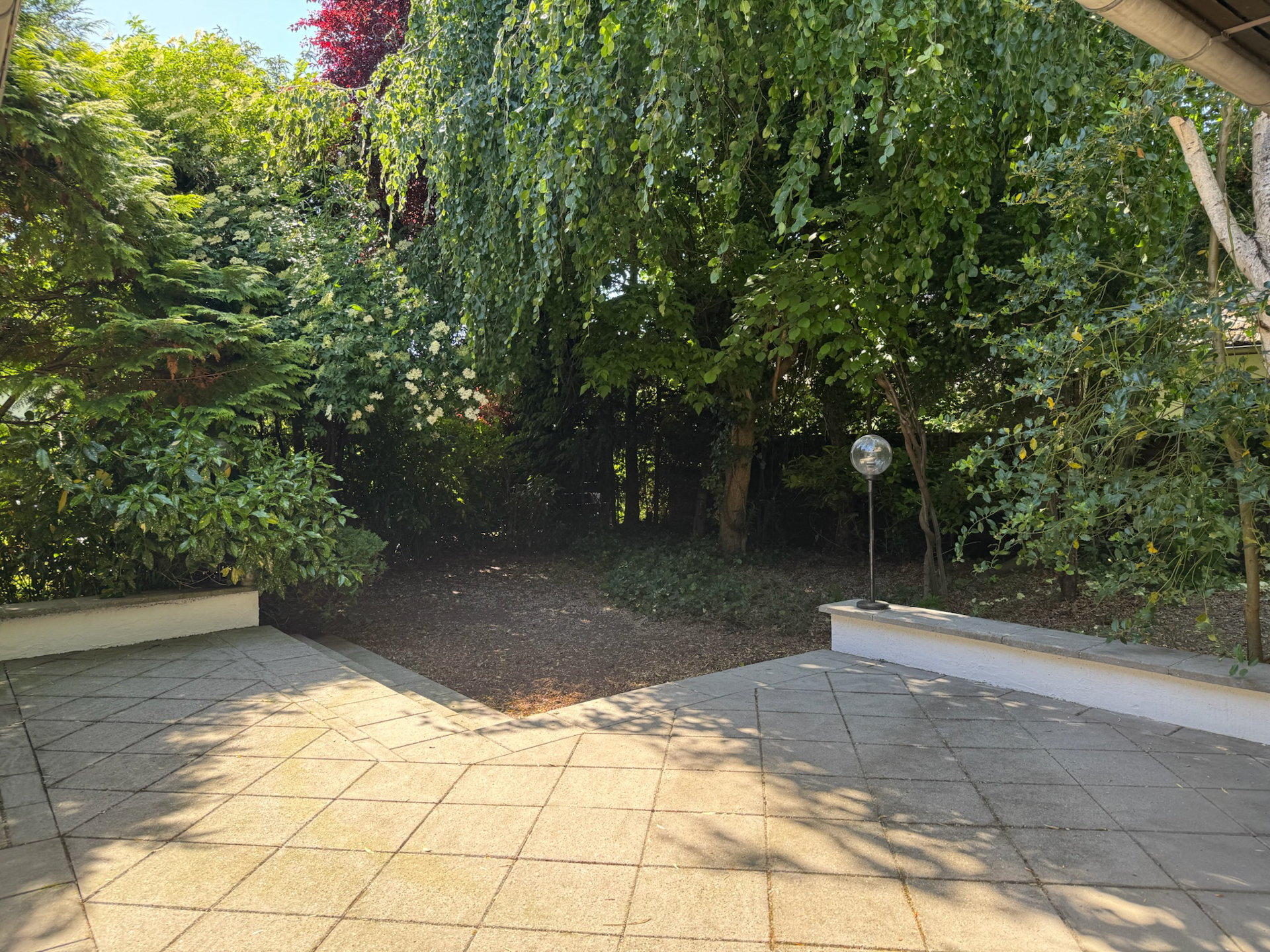 Der Garten hat sich über die Jahre entfalten dürfen und präsentiert sich naturnah im Dornröschenschlaf, bietet jedoch vielfältige Möglichkeiten zur Umgestaltung in einen „klassischen“ Garten.