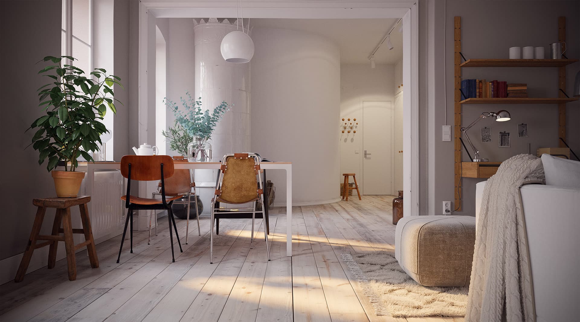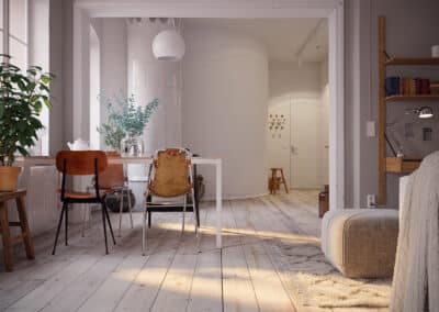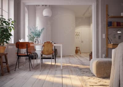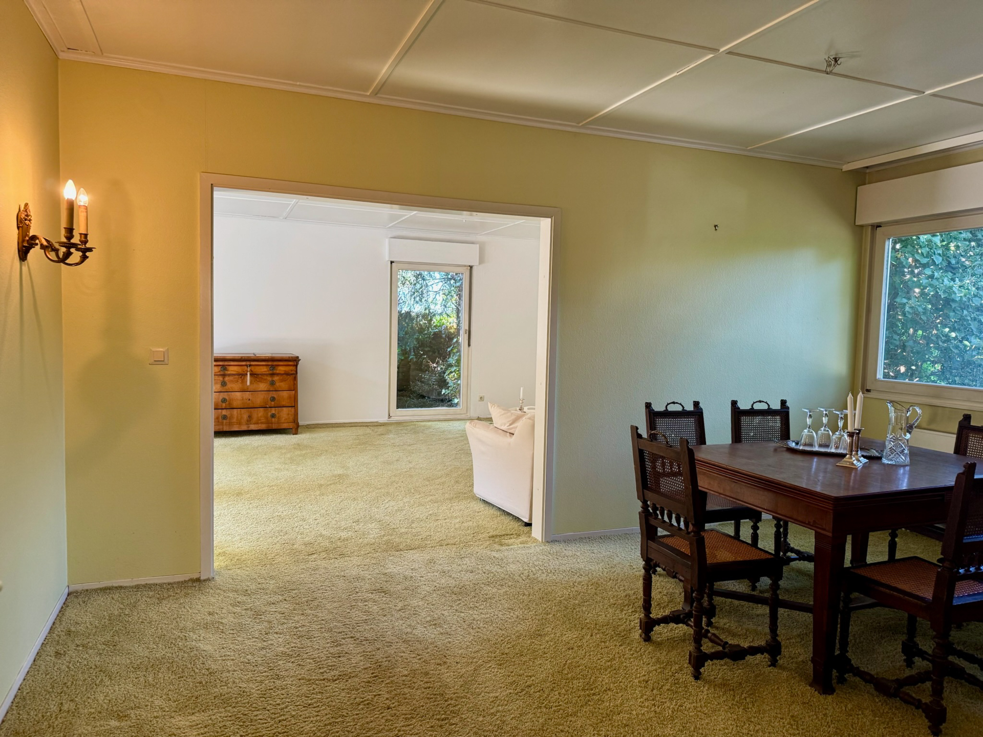 Idee zur Umgestaltung: Man könnte die Küche ins benachbarte Esszimmer verlegen und im Raum der aktuellen Küche ein weiteres (Schlaf-)Zimmer schaffen.