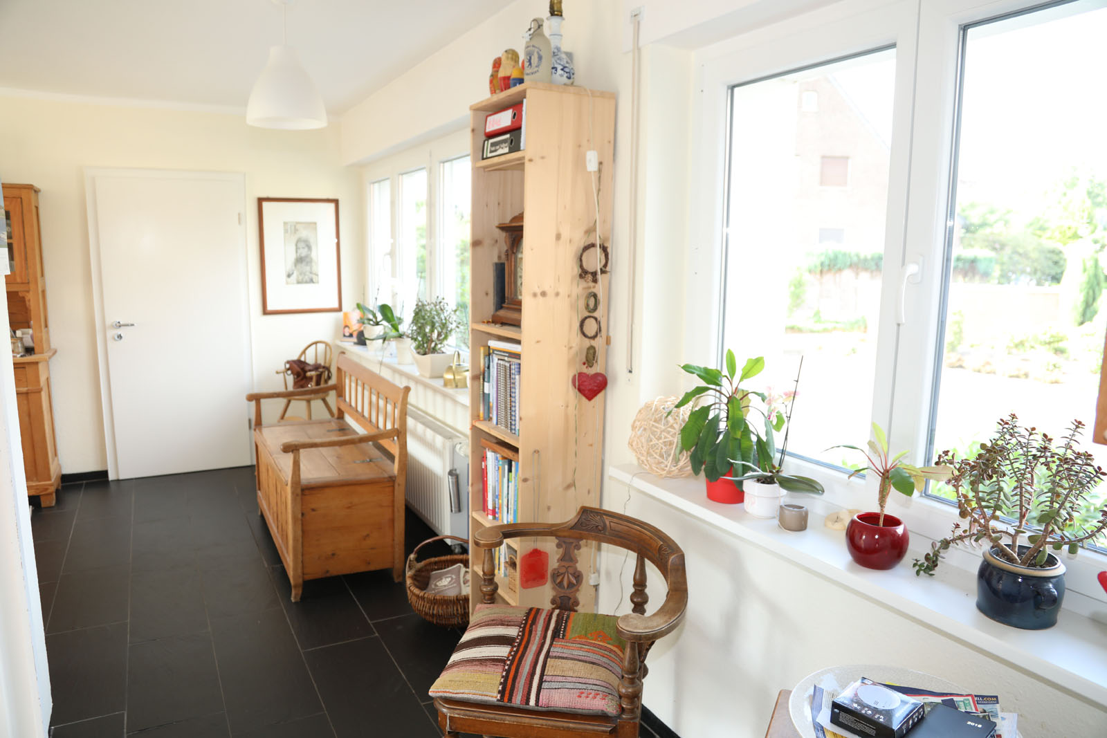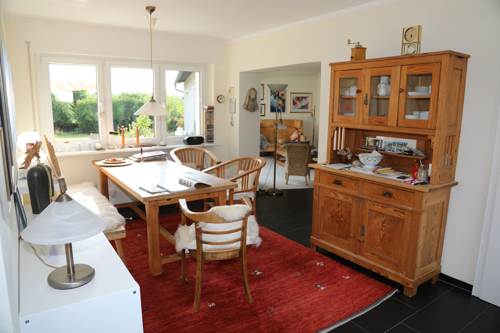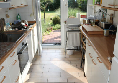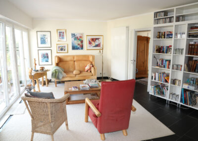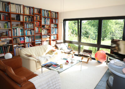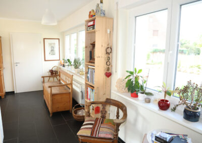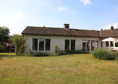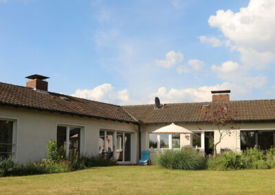 Viele Zimmer sowie die Küche verfügen über erneuerte, bodentiefe Fenster bzw. Türen, über diese gelangt man auf die große Terrasse mit einem Blick ins Grüne.