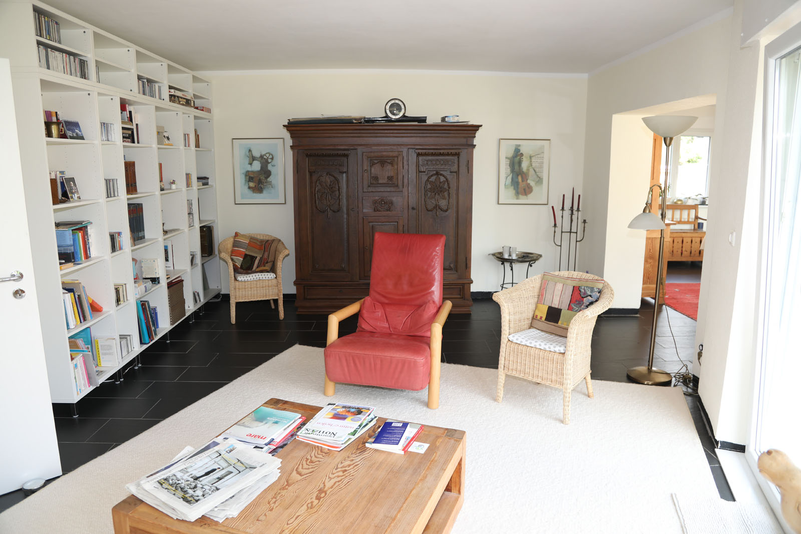 Dank eines wohnlich ausgebauten Raumes, dem Badezimmer (mit Dusche und Fenster) und dem separaten Eingang entsteht der Eindruck, dass es sich bei diesem Bereich des Kellers, der tatsächlich Nutzfläche ist, um eine weitere Einliegerwohnung handelt.
